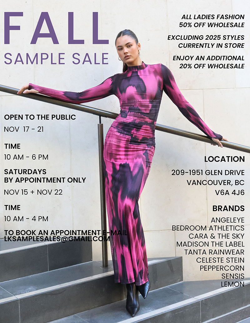 This is the FINAL week to shop LK Collections amazing Fall sample sale! If you haven’t made it over yet now is your chance to scoop up some amazing deals. Tons of new items have been added to the racks plus lots of new gift items for the holiday season, socks, slippers, scarves, hats, mitts & more! The 50% off wholesale rooms have lots of great finds to keep you stylish & cozy.