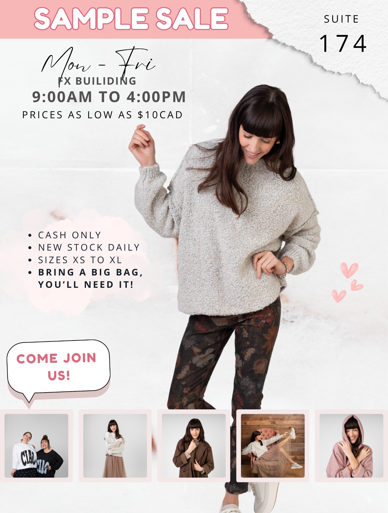 We are so excited this wonderful sample sale is back! Locally made and designed - this is a favorite brand of ours. Slow fashion at it's best. You'll find styles from older seasons as well as this current season. All sizes available.