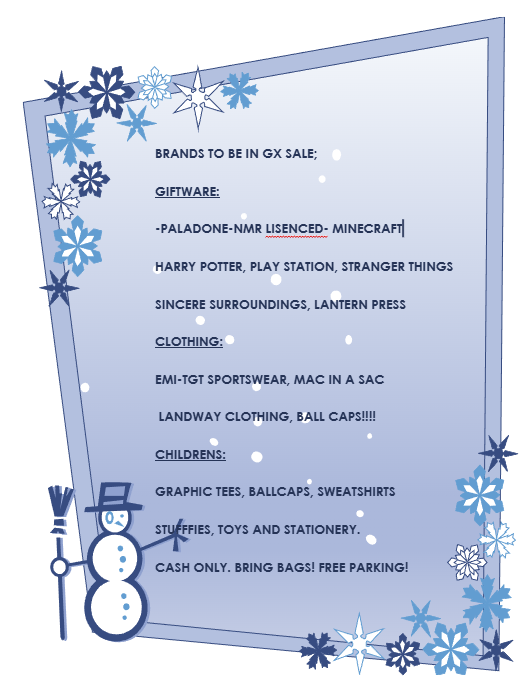 You'll find product for men, women and kids at this warehouse sale! Everything you’ll need for winter or Xmas!